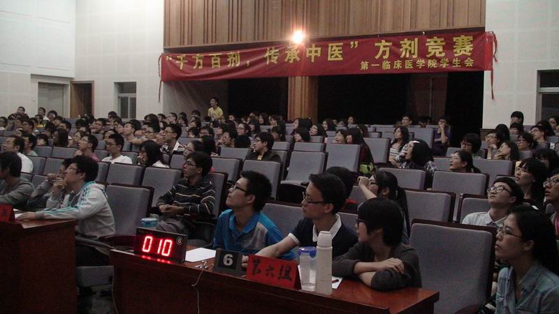 在一站到底环节,各代表队互不相让,主办方准备的题目全部答完还剩下三个队伍,最终只能由评委老师提问决出胜负,最终,09中医七略胜一筹,荣获最佳战斗力奖。另外,11中西医凭借出色的亲友团荣获最佳组织奖。