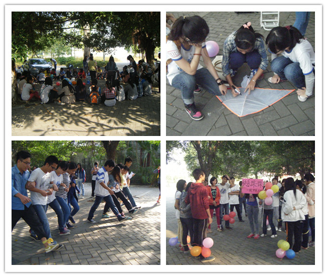 其中,趣味运动会和手绘风筝,是本次团日活动的“重头戏”。趣味运动会包括三人四足、定向越野和踩气球。首先进行的是五人六组,每组派出四人参赛。开始的时候同学们默契不足,五人前进略显困难。但到最后,各组的同学都能相互配合,最终获得第一名的小组甚至“跑”了起来。这个活动讲究“齐心、沟通、技巧、团结、耐心”,不仅促进了班内同学的感情,而且让我们释放了青春活力,缓解了繁重的学习压力。