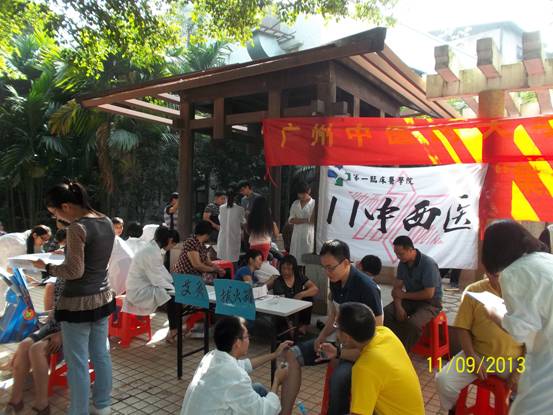 2013年11月10日,我院11中西班于三元里街开展了以“落实群众路线,营造健康社区”为主题的周末社会实践活动。活动的主要内容是为居民提供量血压、艾灸、拔火罐、推拿等的社区服务。