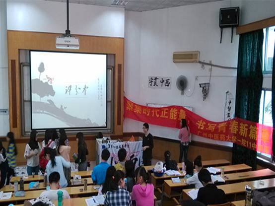 2013年11月7号上午,11中西班团支部在办公楼第四大教室举行了以“聚集时代正能量,谱写青春新篇章”为主题的团日活动之一—书画比赛。参赛人员有25位同学,活动由团支书李玉廷和方燕婷主持。
