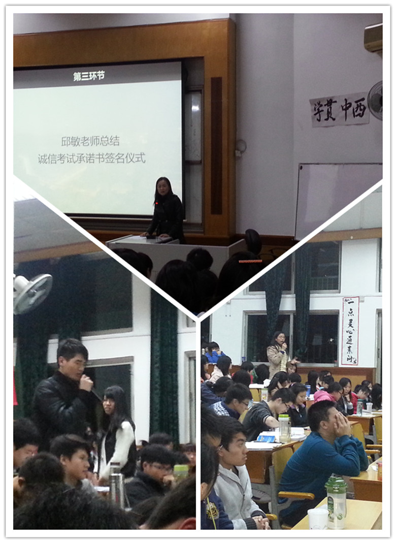最后,邱敏老师进行总结,希望同学们找到适合自己的学习方法,不断完善自己,在大学期间真正学会做人、学会做事。同时邱敏老师呼吁同学们诚信考试,倡议大家集体签署考试承诺书。