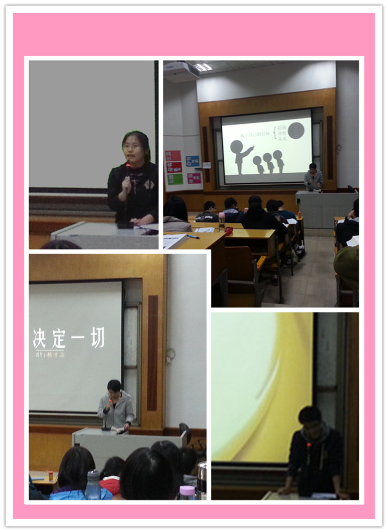 临近期末,考试压力倍增。如何有效学习,提高自身效率应对考试?“学霸”是如何学习的?在此,11中西医班开展了学习经验交流分享会。18点整,在分享会中班上三位成绩优秀的同学先后发言。潘思敏同学以“静、敬、竞、进”四字概括学习历程,即心态平静,尊敬师长,保持竞争和进取的心,并谈及对每门课程的心得感受。杨方发同学则介绍其独特的学习方法“预、查、记、阅、point、总结”,从中医、西医、科研三个角度分析,多层次多角度探讨学习。最后,杨才志同学提出“态度决定一切”的观点,提出应坚持一项喜爱的运动,与舍友充分交流,良好沟通。三位同学认真踏实的学习态度以及实用性强的学习方法获得了同学们的阵阵喝彩和掌声。