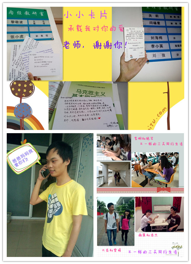 大学两年,我们有很多任课老师,老师对我们谆谆教诲,我们铭记在心。同学们在卡片上写下对老师们想说的话,由心委统一送给老师。小小的卡片,承载了同学们对老师的爱,在增进师生感情的同时有利于营造良好的教学氛围。