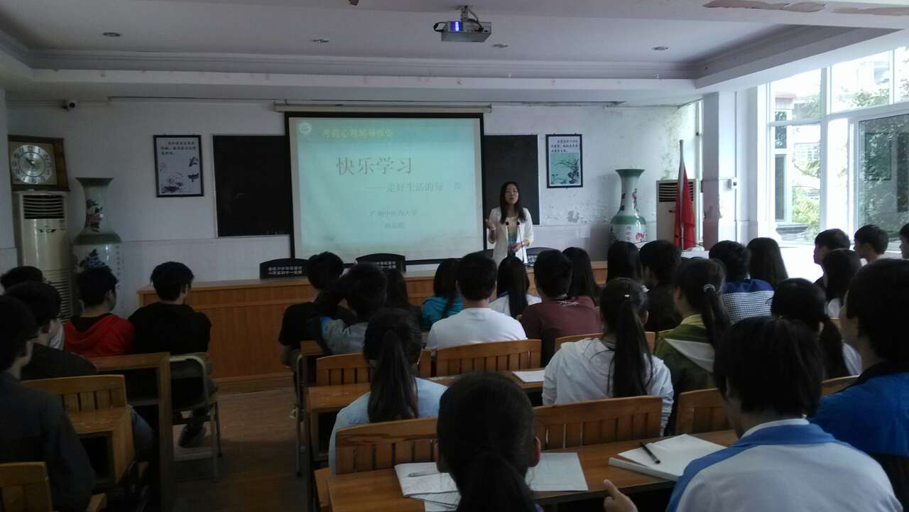 短短的两天时间里,池思晓老师和武夏林老师为两所高校近七百名同学开展了四次讲座。讲座中两位老师通过自己的专业知识,分别从心理和中医养生保健方面对广大考生进行了及时有效的高考前辅导。通过讲座让广大考生了解了应该如何以一个正确的身心状态去面对高考,要如何通过一些中医的手法解决高考中可能碰到的问题,如何以最佳的心理和生理状态去面对高考,去积极的应对高考。