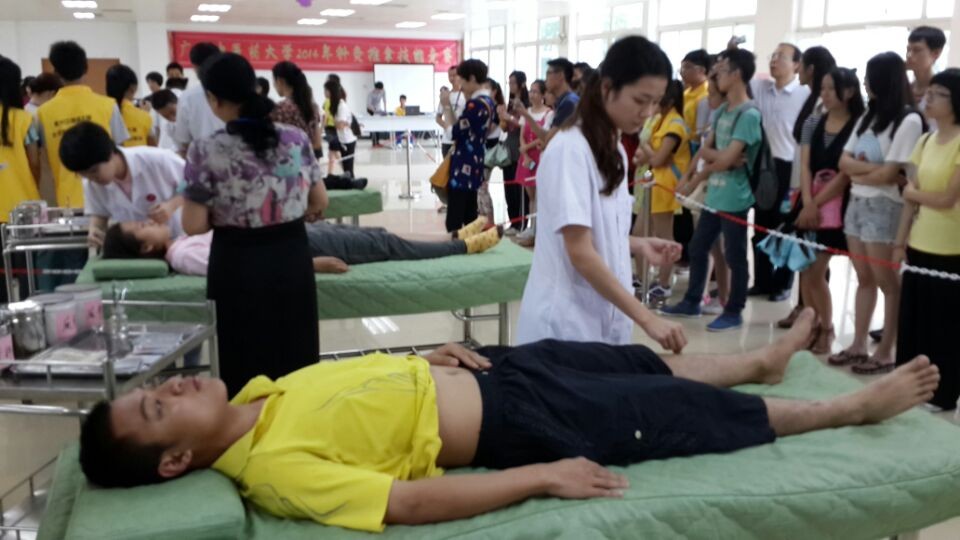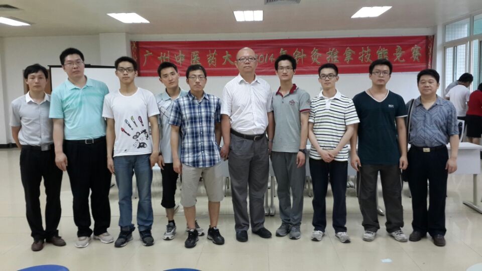 为强化实践育人环节,促进针灸推拿临床教学规范化,激发广大学生的学习热情,提高师生针灸推拿理论和技能水平,同时为我校参加“全国中医药院校技能大赛—2014′皇甫谧杯针灸推拿临床技能大赛”选拔参赛队员,我校于5月17号在大学城校区针灸楼大练功房举行了2014年针灸推拿技能竞赛。我院共派出三支学生代表队,与来自第二临床医学院、第三临床医学院、针灸推拿康复临床医学院以及国际学院的代表队同台竞技!另外,我院还派出一支教师代表队参赛。