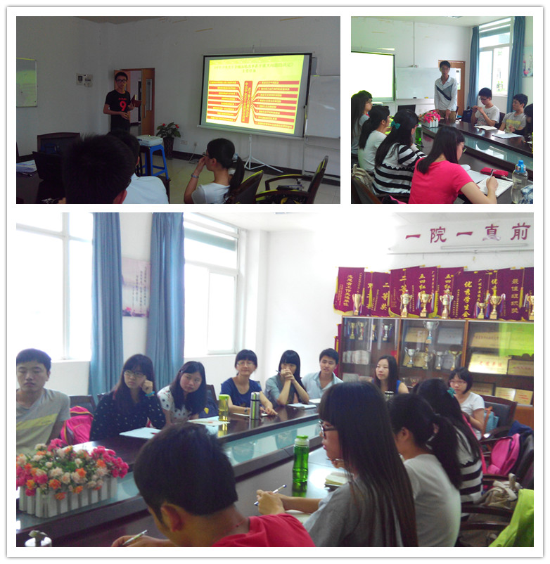 【一院讯】为学习中共十八届三中全会“全面深化改革”的精神,保持党员先进性,提高党员的政治素养,2014年5月12日,2012级本科中医党支部在大学城校区护理楼104会议室举行了五月组织生活会,会议议程包括学习中共十八届三中全会、读书分享会总结以及党日活动的准备情况。大会由罗培杰同志主持,陈思同志记录。