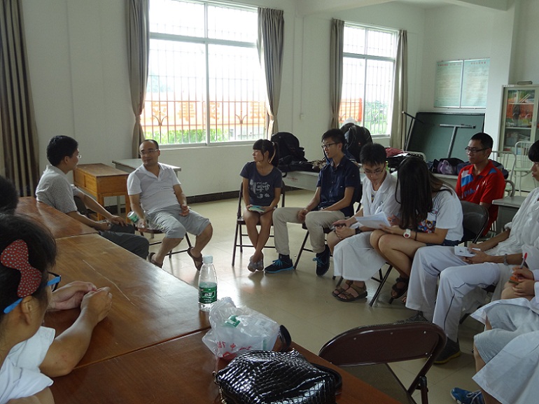 自7月14日始,千纸鹤队在英红医院展开了为期五天的“送医送药下基层”义诊活动。此次活动经得到了英红医院的支持与配合,由数位基层医师带领队员们体验基层医师的日常工作与生活。在活动的最后一天,英红医院还带领千纸鹤队联合英德市人民医院和英德市中医院的医生在新岭村开展义诊活动。当天中午,杰出校友英德市中医院脑病科主任杨之源医师和心血管科主任刘医师还接受了队员的访问。