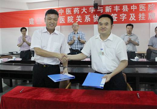 随后,大学王宏副处长和新丰县中医院刘院长分别在合作协议上签字。各位领导共同为广州中医药大学实习医院揭牌,并合影留念。揭牌仪式结束后,王处长等一行在新丰县中医院领导的陪同下,参观了医院的主要临床和医辅科室。