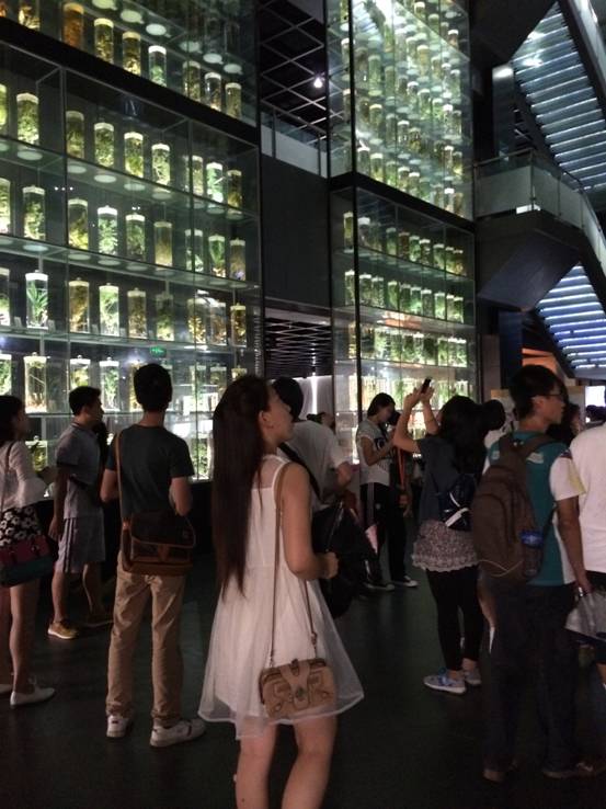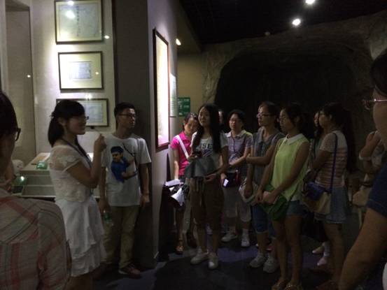 完成心理测试后同学们则前往广东省中医药博物馆参观。初次见到我校的博物馆,同学们都感到惊讶与好奇,纷纷快步走入博物馆的大门。迎面而来的是高耸的中草药标本墙,众多鲜药标本储存于玻璃标本瓶中,与灯光互相辉映,晶莹剔透、耀眼夺目,同学们不禁停下脚步,细细欣赏其中的美妙。博物馆的解说员还仔细地为大家讲述了博物馆的历史与部分展品的故事。同学们跟随着解说员的脚步,漫步在博物馆的各个展厅。馆内葛洪遗迹“洗药池”题句拓片、十二时辰小药瓶等展品无声地诉说着那一段段历史故事。博物馆里缤纷的展品引得众人忘记了时间,在中医药渊博的历史文化中流连。