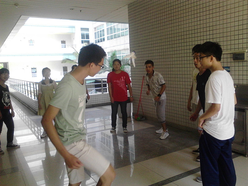 本学期开学初,班团委对体育营进行了重新调整。大一时,三球连与班队是分开的,三个兴趣小组的成员与班队成员有重复,而且小组活动与班队训练有冲突,因此小组活动开展起来比较困难。班团委经过与三个小组组长及班队队长沟通协商之后,决定将三球连与班队进行合并,每周进行一次常规训练。