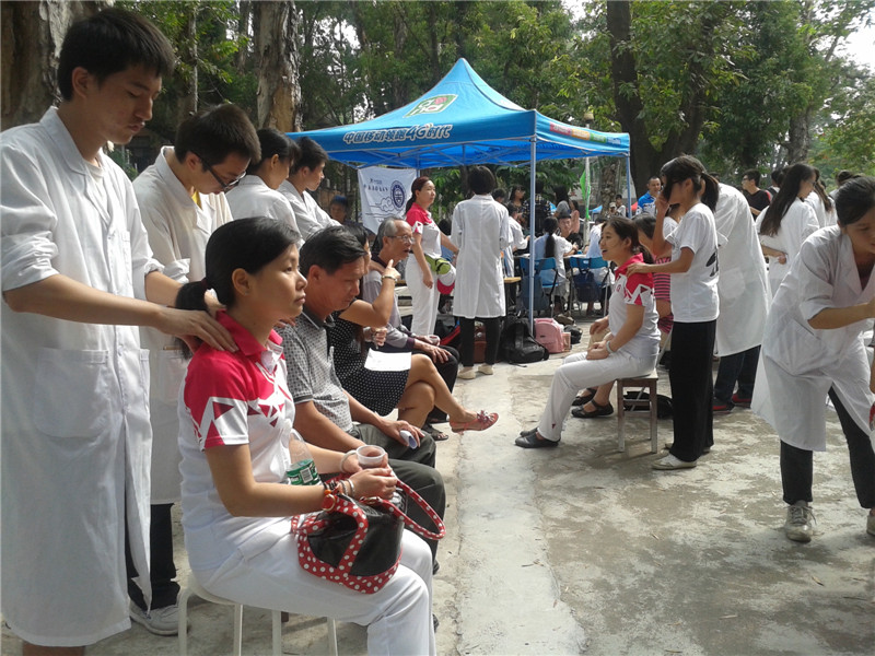 下午一点钟,现场还有很多人,同学们忙得不开交,甚至都没有吃饭,但是同学们说:“作为一名医学生,我们很开心能为这么人多人服务,而且他们的每一声赞美,他们的每一声肯定都要让我们欣喜万分,让更多人肯定和支持中医是我们的责任,发扬中医文化任重而道远,我们会坚持下去,将中医传承发扬下去。”