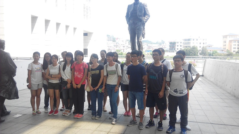 笔直向上的“共和之路”着实勾起了同学们参观的热情,大家纷纷到雕像旁留影纪念,在一同合影后大家来到了第一个主题展区——辛亥革命时期广东名人展,展览分为“孙中山与他的助手”、“革命志士”、“广东籍各界代表人物三个部分,旨在让参观者对先烈们所倾力付出的一生有精神层面上的认同感。紧接着我们便进入了辛亥革命主展区,展览分为九个重要部分,这个展区以时间为轴线,用大量复原场景、雕塑、油画、高分子硅胶人像、模型、互动式游戏的方式,生动地再现了百年前的辛亥革命。