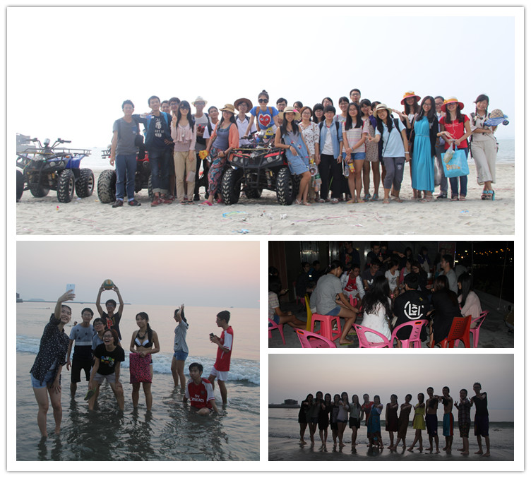 11月1日上午8:30,秋游队伍乘坐旅游大巴从广州出发,中午12:00准时到达惠州双月湾。在车上,第一个子活动“欢唱青春之歌”正式开始。同学们一路上高唱青春之歌,既重温了经典的青春歌曲,也唱出了对未来的希望。到达旅店后,同学们收拾整理好各自的行装,下午4:00,期待已久的活力沙滩球赛以及个性踏浪摄影同时开始。在活力沙滩球赛的现场,同学们拿出了专业的比赛水平,认真积极地参与到比赛中,此活动极大地调动了同学们运动的热情。同时,在一望无际的海边,其他的同学迎着海风,在摄影师的镜头前尽情地摆出各种姿势,将自己最美好的时刻留在了摄影师的镜头里。伴随着夕阳余晖,个性踏浪摄影也为同学们留下了最美的时刻。
