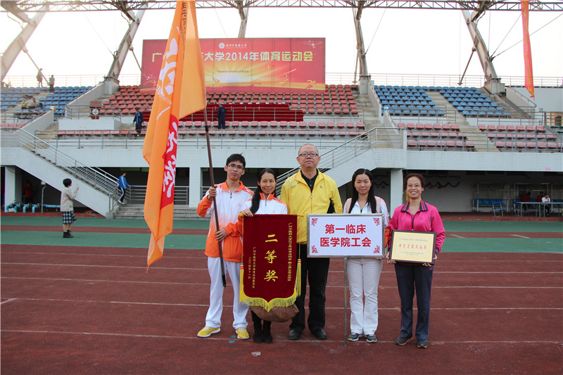2014年11月13、14日,我校体育运动会在大学城教学区田径场顺利举办。一院全体运动员再创佳绩,荣获学生组男女混合团体一等奖和学生组男女混合八段锦一等奖。其中,男子团体总分第二名,女子团体总分第三名。一院教工组则获得了男女混合团体二等奖和体育道德风尚奖,郭文海副书记获得优秀领队称号。