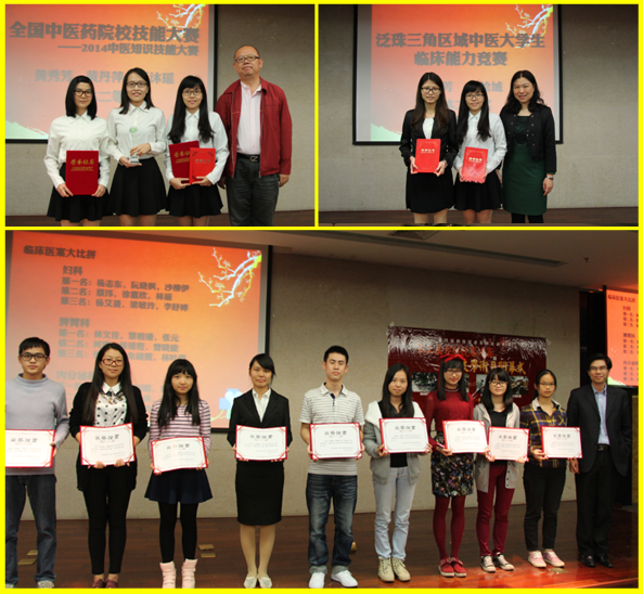 方剂竞赛决赛结束后举行科技学术月闭幕式。主持人通过视频解说回顾本次科技学术月各项活动及成果, 接着是颁奖仪式,除了对科技学术月获奖的个人和集体进行颁奖外,还对今年在“全国首届中医药院校技能大赛”和“泛珠三角区域中医大学生临床能力竞赛”获奖的一院学生进行了颁奖。