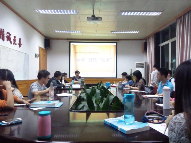 会议由范志诚、曾颖凤两位同志主持。首先,曾颖凤同志通过PPT向我们展示了我们生活中的一些社会现象。从“我爸是李刚”事件到“李双江之子李天一”事件,再到“我爸是市长”事件,向我们展示了何为“拼爹”,何为“坑爹”。