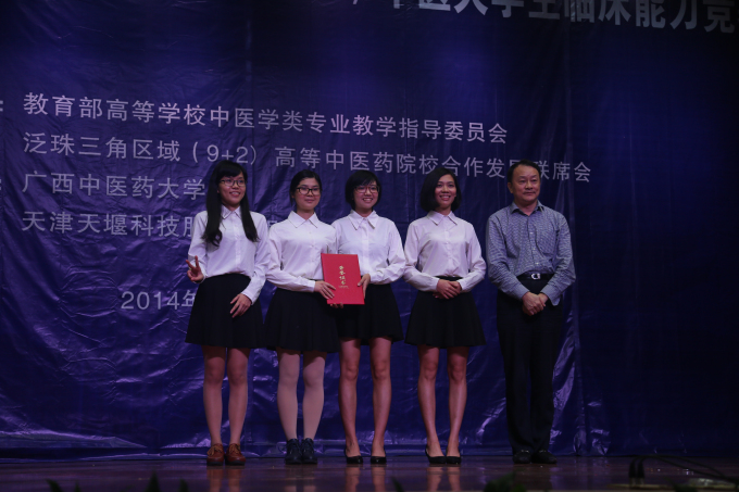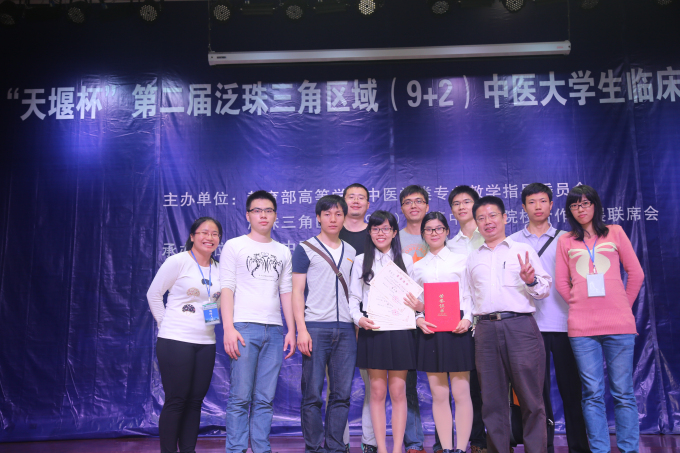 11月28-29日,“天堰杯”第二届泛珠三角区域中医大学生临床能力竞赛在广西南宁广西中医药大学隆重举行,本次竞赛共有来自广东、福建、云南、贵州、四川、江西、湖南、海南、广西等地的中医院校及相关专业高等院校和香港中文大学、香港浸会大学、澳门科技大学等15所院校的代表队参加。最终,由我院2010级黄秀芳、王沐瑶等4名同学组成的学校代表队凭借扎实的中医基础理论知识功底和娴熟的临床操作技能荣获大赛团体第一名,另外,本次比赛还评出了各个考核站的前三名作为单项奖(总共十个考核站),黄秀芳同学同时斩获中医学基本理论知识考核、舌诊与脉诊技能竞赛和针灸技能竞赛等三个项目的第1名,王沐瑶同学获得中医学基本理论知识考核第3名。
