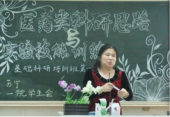 4月17日晚,伟德国际1946源于英国第九届基础科研培训班在A209进行。我校基础医学院西医基础公共实验室主任苏宁教授开讲第一课,主题为“医药类科研思路与实验技能训练”。