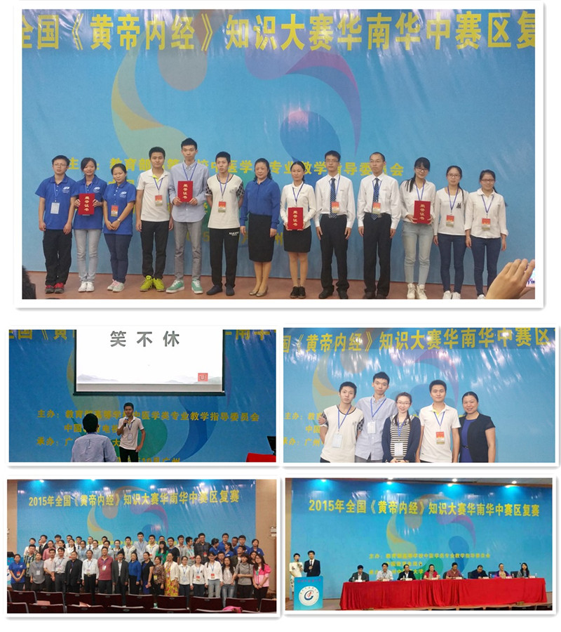 【一院讯】2015年10月31日,2015全国《黄帝内经》知识大赛华南华中赛区复赛在我校综教楼12楼学术报告厅举行,其中我院初赛成绩100分的四位学生代表学校参加了本次复赛。经过激烈角逐,由我院2012级中医学实验班郑文江、许纪超、罗智鸿组成的代表队获得复赛一等奖,作为广东省唯一一支队伍挺进全国总决赛,同时我院2012级中医学2班刘湘云参与的另一代表队也获得了复赛二等奖。