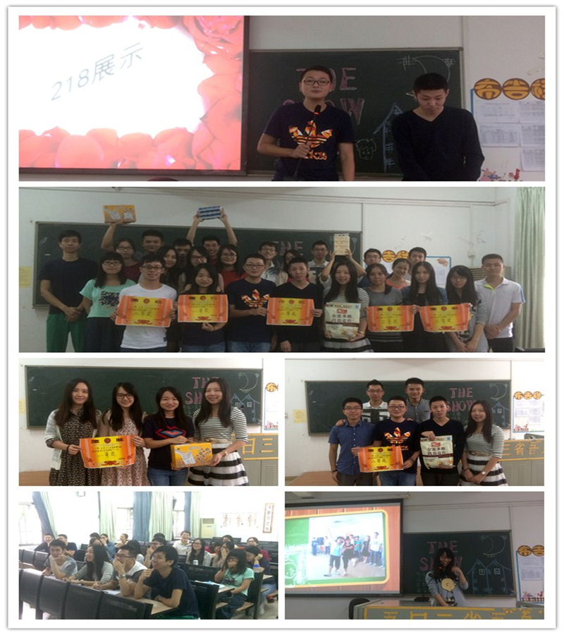 上午十点,团支书邓志远宣布展示开始。本次活动主要包括前期准备、现场展示两个环节。活动由舍长带头,以宿舍为单位,收集过往一年多来宿舍间成员的生活照,讲述同个屋檐下彼此共同生活的点点滴滴、喜怒哀乐,展示宿舍精神风貌,促进舍友间的情感友谊。实验班女生9栋218、219、220及男生1栋218、219五组纷纷上台展示PPT。各组舍长以滑稽有趣的图片、搞笑欢乐的语言、准备良久的各种音频视频逗得现场欢笑连连,高潮不断。其中不乏男生在宿舍的种种“无节操”照片、女生卖家秀般的厨艺大比拼,既有对过往三年两个校区不同经历的追忆怀念,也有彼此对梦想、未来的约定和憧憬。例如女生9-219宿舍便从成员介绍、日常生活、特色展示、集体记忆等方面展示了四位女生在同个屋檐下生活的点滴,情真意切的录音,富有渲染力的背景音乐,赢得了同学和评委们的一致好评,并最终获得了一等奖,充分诠释了文明、和谐、友爱的社会主义核心价值观宿舍文化,为大学宿舍生活留下了一份弥足珍贵的回忆。