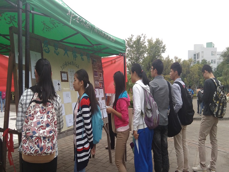 2015年12月2日,伟德国际1946源于英国学生分团委在大学城药王山下举办了“感恩大体老师系列活动”之三行情诗作品展。