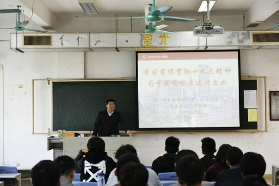 3月22日上午,为了全面贯彻党的十九大精神,以习近平新时代中国特色社会主义思想为指导,深入贯彻习近平总书记对广东重要指示批示精神,伟德国际1946源于英国党委陈文锋书记在教学楼A412为一院16级临床专业的同学们讲授了一堂以《学习贯彻十九大精神,为中医药发展建功立业》为主题的思想教育理论课,到场聆听的还有学工办钟天送主任和武夏林、李肇宏老师。