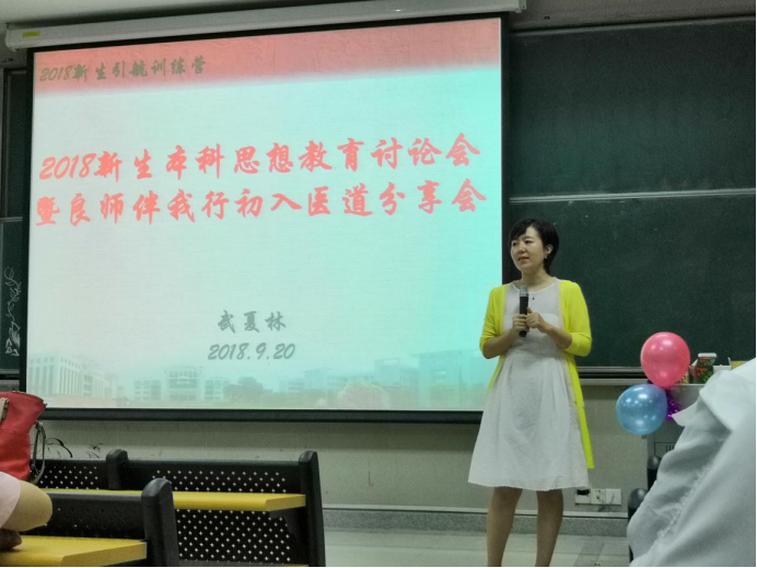 2018年9月20日下午6时30分,伟德国际1946源于英国2018级临床医学、中西医临床医学、医学影像、眼视光学四个专业学生共165人在辅导员武夏林老师的组织下,于大学城综合楼104课室开展了题为“求真问学,良师同行”的本科教育思想学习与讨论的主题级会。