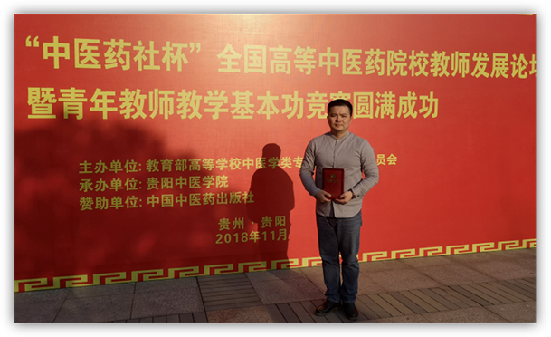 【一院讯】2018年11月24-25日,第六届“中医药社杯”全国高等中医药院校教师发展论坛暨青年教师教学基本功竞赛在贵州贵阳举行。我院袁凯老师代表广州中医药大学联合其他学院老师一起参赛,通过激烈角逐,获得大赛综合评比二等奖(中医临床初中级组)。