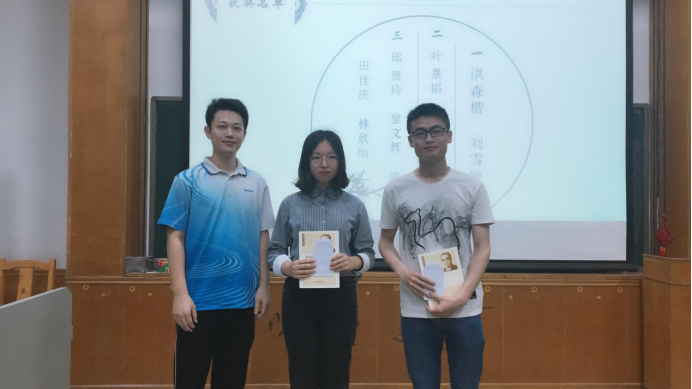 班会开始先表彰了主题征文比赛的10位获奖同学。接着是洪森楷、刘雪婷、叶景韬三位获奖代表的分享发言。洪森楷同学用他自己在跟诊和参加“天使之翼”志愿活动时的所见所闻和感想,诠释了他心目中医生的“用心、细心、爱心”。刘雪婷同学分享了她寒假在北中医的跟诊刘教授和冯教授的经历,两位教授都拥有高尚的医德和精湛的医术,是大家学习的榜样。而叶景韬同学则表示他心目中的医生必须有“哲学家的思维”、“科学家的敏锐”、“政治家的口才”、“菩萨般的心肠”和“运动员般的体魄”,并详细解释了理由。