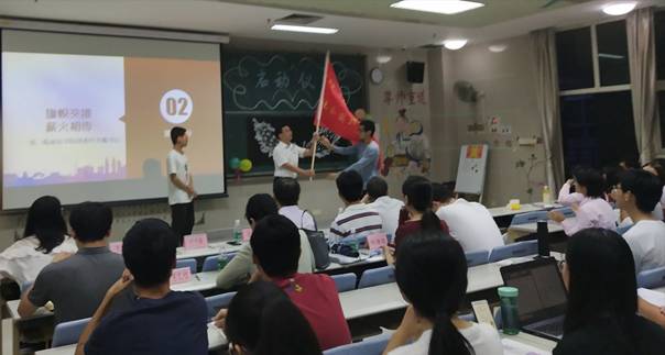 会议开始,通过视频回顾了2018年暑期社会实践活动的点点滴滴,接着,团委副书记李平老师介绍了我院2019年暑期社会实践筹备情况并宣布立项结果。之后,团委书记叶升鑑老师接过上一届队长代表递过的社会实践旗帜,交接传递给本届队长代表,寓意薪火相传。在此之后,张念樵副书记发表讲话,他首先肯定了一院的社会实践活动,并从学习、成长和服务社会三个方面给同学提出了建议,并提出了安全等方面的要求,鼓励同学们在社会实践中学本领、长才干、服务社会;最后,张念樵书记与队长代表一起放飞梦想的翅膀,2019暑期社会实践活动正式启动,会场的气氛也达到了最高潮。