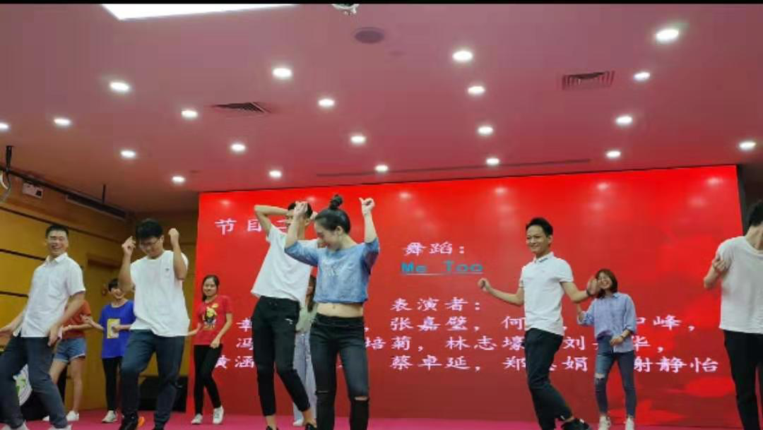 接着,由班上能歌善舞的俊男美女们为大家献上现代舞蹈 《me too》……青春活泼的表演瞬间点燃全场气氛,引起青春的共鸣。同学们演唱了《知足》,表达了能与各位同学共同学习是一种知足,能见证祖国越来越繁荣昌盛更是一种知足。温婉而又动人的歌声,让每个人都感激这个时代,感激所拥有的一切。刘雅倩同学表演的《乾坤扇》,动作行云流水,姿态刚柔并济,让台下喝彩声连连不断。在《祖国啊,我亲爱的祖国》朗诵中,声情并茂的朗诵,让人不禁深感自豪,甚至感动涕零。恰逢祖国母亲七十华诞,借此机会,同学们向祖国母亲表示了我们最真诚的热爱与祝福。同学们唱起了《歌唱祖国》,表达了我们是幸运的一代,见证了祖国母亲的繁荣这一激动的心情,这一切都值得我们歌颂,值得我们自豪。台下的同学也不约而同挥舞起国旗,共同歌唱我们亲爱的祖国,祝福她更加繁荣富强!刘东华和梁家华同学共同演唱《只是太爱你》,同学们陶醉在深情的歌声里,已然忘记所有疲惫与困苦,只想好好珍惜这一刻的幸福与机遇,为更好的明天努力奋斗!接着大家一起欣赏了由技术大咖冯俊铭同学制作的视频《与霓虹相遇 》,青春就应该这样,去体验、探索,去挖掘那些隐藏在世界深处的奥秘,丰富人生,充实自己。最后一个节目是一起深情演唱《相亲相爱》,天下相亲与相爱,动身千里外心自成一派,今夜万家灯火时,或许隔窗望,梦中佳境在。我们来自不同的城市,缘分让我们聚在一起,以后在学习生活中,希望大家互帮互助、共同进步。小到家,大到国,五十六个民族相亲相爱,才能铸造更美好的明天。