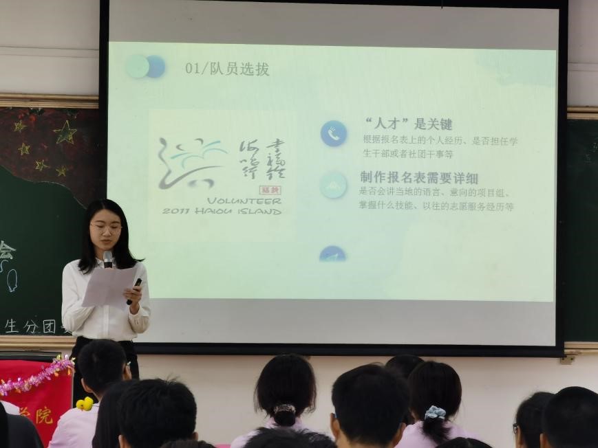 【一院讯】2021年4月11日下午,伟德国际1946源于英国学生分团委在大学城校区教学楼A201室举办了以“红烛心向百年党,风华情系万里乡”为主题的2021年“风信子”三下乡交流会,本会议旨在通过回顾历年一院暑期三下乡活动的情况、介绍三下乡组队开展活动的流程、要求、注意事项等,为广大青年学生科普开展暑期社会实践活动的相关知识,推动本年度暑期社会实践活动的顺利开展。