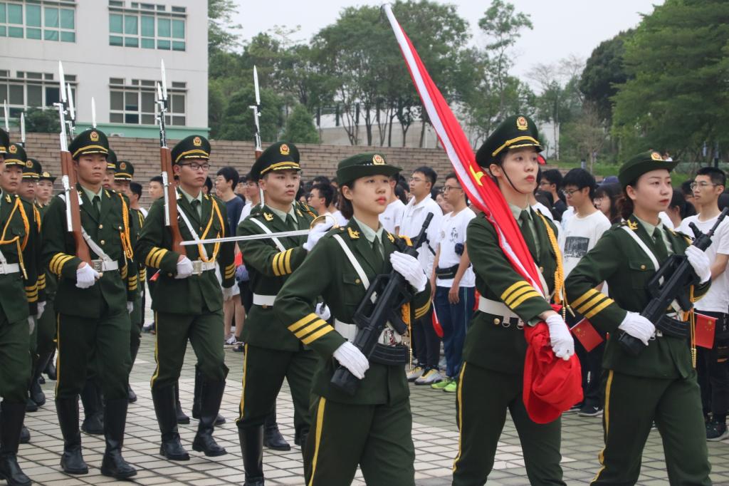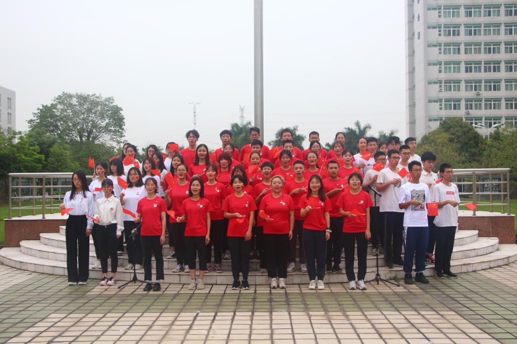 鲜艳的国旗迎风飘扬,嘹亮的歌声萦绕耳旁。在主持人的带领下,全场齐声高喊口号:“岁月易流转,党魂永存心。以我青春,筑我中华!”在全体师生对党和祖国的高声祝福中,升旗仪式圆满落幕。