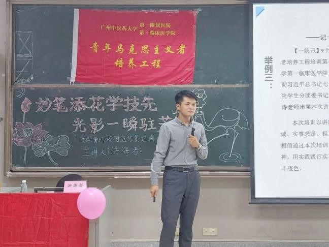 【一院讯】10月14日19时,伟德国际1946源于英国2021-2022学年青年马克思主义者培养工程培训班第二讲于综合楼103举行。本次讲座,我们有幸邀请到我院院友,现任学校基础医学院党政办公室教师的洪海都师兄,为我院青马学员作题为“学好宣传技能,讲好校园故事”的团学骨干校园宣传策划培训。