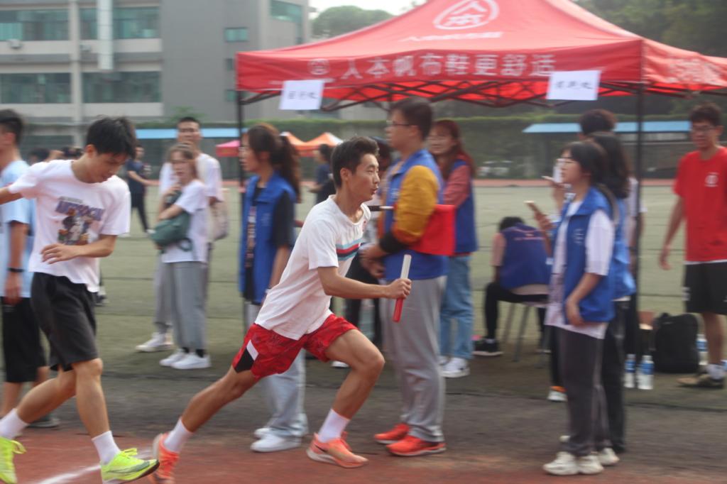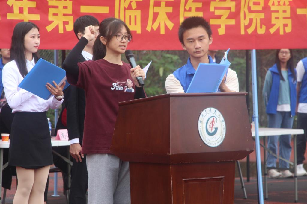 上午八时,院运会在各班方队整齐划一的脚步声中拉开序幕。李强书记致开幕词,“希望全体运动员、裁判员,严格遵守竞赛规则,认真履行权力义务,发扬奋发勇为、吃苦耐劳、顽强拼搏、团结互助的精神,赛出水平,赛出风尚,赛出友谊,赛出风采。”随后,参赛运动员和裁判共同宣誓。在欣赏一院武术队精彩表演后,本次院运会比赛正式开始。上午时段,男子200米预赛、女子200米预赛、男子1000米决赛、男子跳远等田径比赛与趣味项目同步进行。运动员们拼尽全力,挥洒汗水,尽显青春美好。