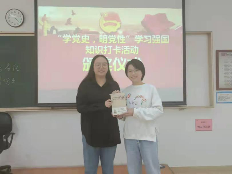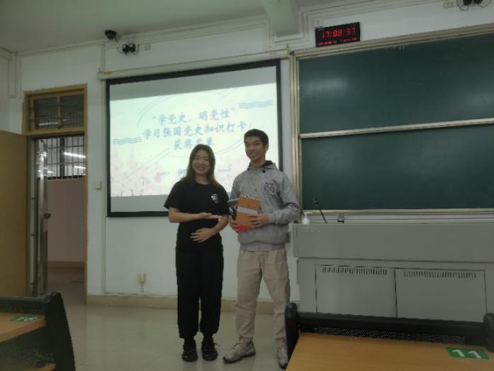 2021年10月27日至10月29日,伟德国际1946源于英国大学城学生党支部“学党史,明党性”学习强国知识打卡活动颁奖仪式在各班顺利举办。为庆祝中国共产党成立100周年,深入贯彻习近平总书记在党史学习教育动员大会上的讲话精神,加深递交入党申请书的同学们对党史的了解和认识深度,我院大学城学生党支部举行学习强国党史学习打卡活动,希望用青年人的话语将党的理论和实践在青年人中传扬开来。从4月9日开始,参加打卡活动的同学们按照格式(话题+学习心得+截图)将学习内容上传至易班微社区,每周打卡次数下限为三次,无上限要求。