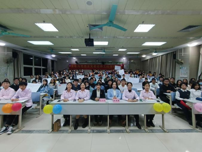 接着,池老师通过近年来团学骨干的一些舆情新闻事件引发学员们的思考,邀请大家围绕“团学骨干的角色定位及所应具备的核心素质”的主题开展小组讨论,并以小组为单位借助白纸、彩笔呈现小组讨论的结果。现场气氛达到高潮,各小组热烈讨论,分工协作,你一笔我一画创造小组的思想结晶。短短十分钟的时间,各小组完成任务并争先恐后上台展示成果,各组精彩的分享引来了现场阵阵掌声。结合大家展示的情况,池老师明确指出了团学骨干的角色定位首先是学生,是‘服务者’不是‘领导者’,是榜样,是广大同学的代言者。她还从“思想政治素质”、“智能素质”、“健康素质”三大方面入手,与大家一同交流一名合格的团学骨干所应具备的核心素质。随后,池老师通过视频与同学们介绍了时代楷模、“七一勋章”获得者黄文秀的先进事迹,并结合自己在黄文秀生前工作地广西百色乐业县百坭村的下乡经历,鼓励同学们要学习黄文秀不忘初心、心系民众,在脱贫攻坚道路上勇担使命、舍我奉献的精神。最后,为了引领学员们做到“学思践悟,奉献于行”,池老师邀请了“百色筑梦”志愿服务队队长简心悦,以及获得本学期青马工程“我为母校师生办实事”实践活动一等奖获奖小组代表张雨露、黄静婷上台分享组织实践活动、带领同学们一起为乡村百姓、为身边师生办实事的体会。在场的学员们也被分享者所感染,纷纷表示在未来一定要积极投入志愿服务中,以行动为母校、为祖国的发展贡献一份力量。