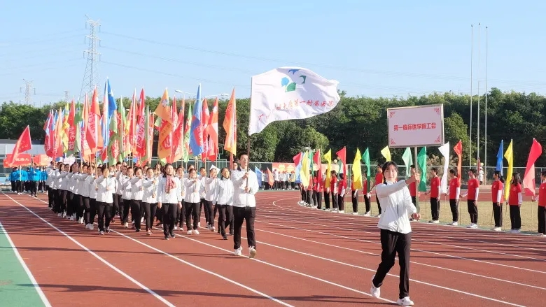 【一院讯】体育精神如骄阳,温暖冬寒,又如烈风,驱散阴霾。11月28日至29日,广州中医药大学2021年体育运动会在大学城校区教学区田径场举行。开幕式上,第一临床医学院的学生方阵、第一附属医院工会方阵先后入场。旗帜迎风飘扬,口号整齐嘹亮,尽展一院“凌云赛秋风,志高比灿阳”的豪迈气概。