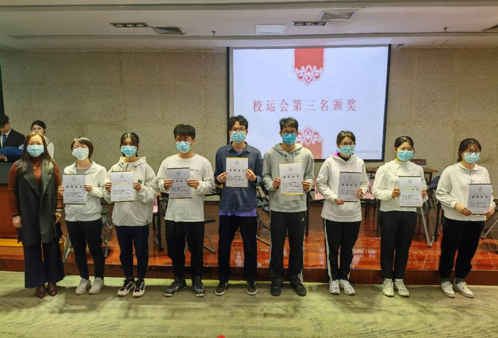 活动第二部分为校运会表彰,现场开始播放校运会回顾视频。视频带领我们回顾了本届校运会的难忘瞬间。接着,何诗诗老师、邱敏老师、池思晓老师以及李肈宏副主任分别为校运会获得项目第四、第三、第二、第一名次的运动员颁奖,方熙茹处长、章遐义副书记为优秀运动员及优秀集体组织颁奖,并合影留念。