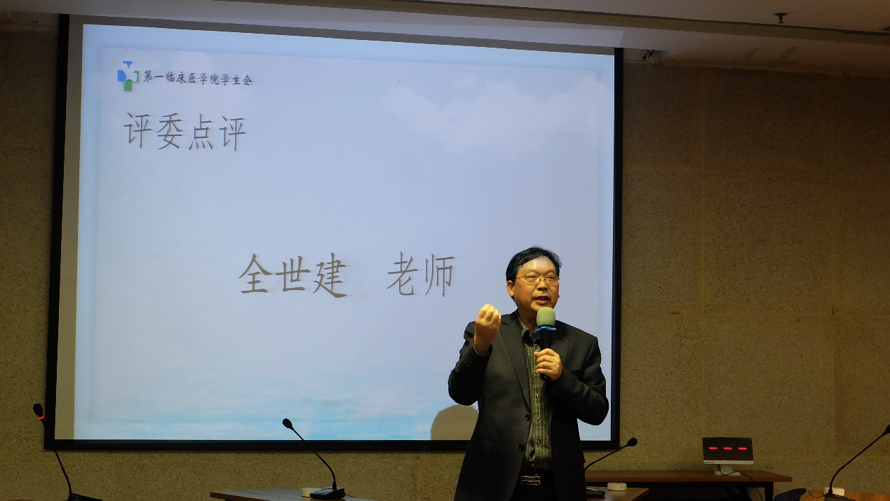 激烈的比赛后,全世建主任对本次竞赛做出点评。全主任肯定了选手们扎实的方剂学基础,认为本次比赛水平高超、过程精彩,特别赞扬了几支表现优异的队伍在“你说我猜”环节展现出的记忆方法。但同时也点出同学们在辨证论治方面存在的不足,希望往后参赛学子能够加以重视,在往后的医学生涯中临床实际下功夫,为一院建设添砖加瓦。随后是颁奖环节,三位专家为在整个科技学术月中表现优异的个人和集体组织进行颁奖,并合影留念。