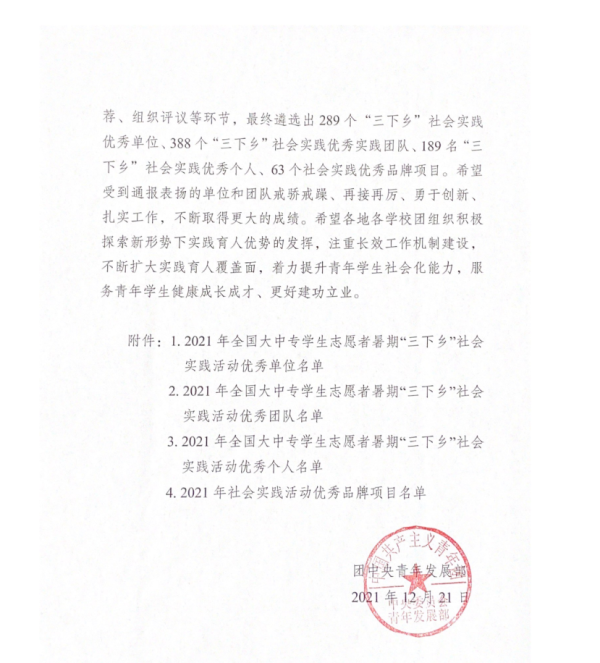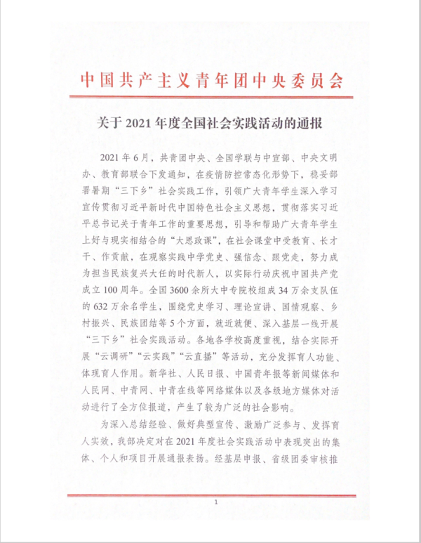 喜讯!我院团委荣获2021年全国社会实践“优秀单位”!