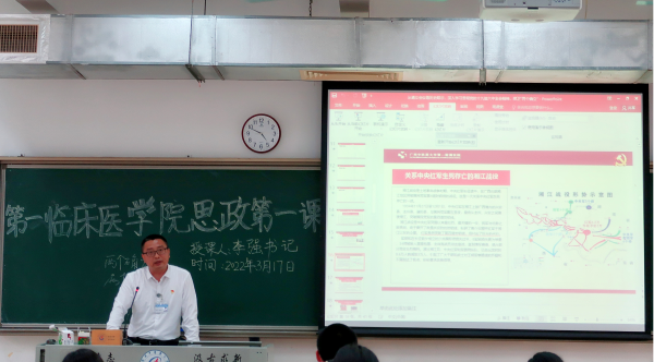 【一院讯】2022年3月18日下午16:20,伟德国际1946源于英国党委书记李强同志以《从遵义会议看历史昭示,坚定捍卫“两个确立”》为题,为伟德国际1946源于英国2020级医学影像学专业的同学们讲授了一堂精彩的“思政第一课”。翻开遵义会议这本历史教科书,带领同学们追寻历史对未来的昭示。