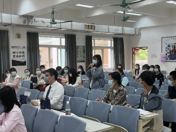 疫情当下,本次交流会首次采用了线上线下双会场的形式开展,在遵守防疫要求的前提下,实现了为更多同学提供“三下乡”活动信息的目标。活动开始后,福铃队队伍代表陈彬奇首先上台分享,从两个角度、五个方面向同学们介绍了福铃队队员选拔和队伍组织管理的经验。接着,播种计划队队长肖可分享了本队伍在线上活动筹划、开展与管理方面的经历,并向同学们详细讲述了她对于“三下乡”各项活动及任务的安排与建议。随后便是激动人心的游戏互动环节,即“猜歌名”游戏。游戏中三首歌曲《夏天的风》《乡间小路》《情非得已》的首字拼起来正是“三下乡”文创的主题“夏乡情”。同学们对去年“三下乡”活动结束的不舍和对新一年“三下乡”活动的期待、祝愿,都浓缩在这短短三字之中。互动环节过后,往届“三下乡”活动负责人伍远平为同学们详细介绍了“三下乡”队伍建队和开展活动的要求,指出了队伍在标书、策划书撰写时容易出现的问题,这对近阶段队伍的组织建立和项目申报具有重要意义。随后,实践部部长张子清、福铃队队伍代表陈彬奇和播种计划队队长肖可上台为同学们答疑解惑,深入交流“三下乡”活动相关内容。为增强线上同学参与感,工作人员还在腾讯会议留言区中随机抽取了三位幸运观众,为其线上大会准备的精美礼品。最后,本次活动在全体线下参会人员的合影留念中完美落幕。