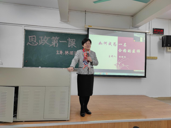 2022年3月29日晚19:00,伟德国际1946源于英国林丽珠副院长以《如何成为一名合格的医师》为题,采用线上线下相结合的方式,在综教楼306教室借助网上直播的方式,为一院2019级全体同学讲授了一堂精彩的“思政第一课”。