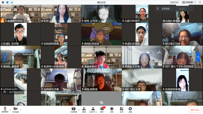 答疑结束后,活动接近尾声,在主持人的邀请下,与会的老师和同学们打开摄像头,进行截屏留念。至此,本次暑期社会实践活动调研报告培训会圆满结束。