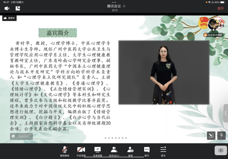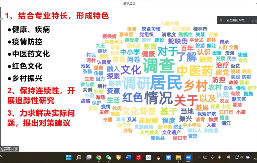 【一院讯】2022年5月7日晚,广州中医药大学伟德国际1946源于英国“调研推动实践,技能筑梦下乡”2022年暑期社会实践活动调研报告培训会在腾讯会议平台如期举行。为了帮助我院学子系统地学习调研报告形成的步骤,提高暑期社会实践活动调研报告质量,我们有幸邀请到我校公共卫生与管理学院应用心理学系主任、中医心理学博士生导师黄时华老师,针对暑期社会实践活动的调研选题、问卷设计以及报告撰写为同学们进行培训,我院两百余名“三下乡”队伍代表参加了本次线上培训会。