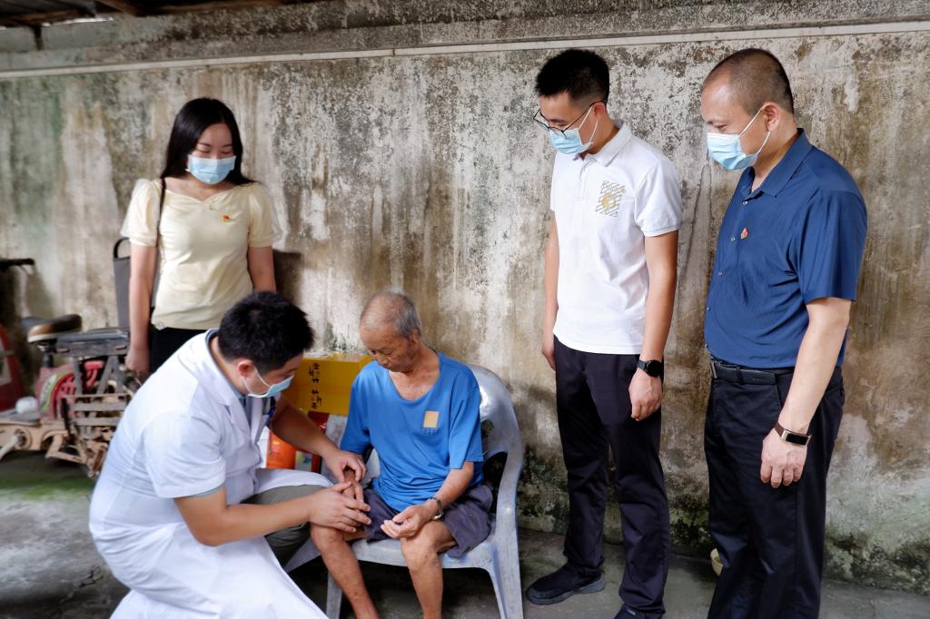 义诊活动如火如荼地进行着,义诊医生和福铃志愿者服务队缤纷两路,一部分人继续坚守义诊现场,另一部分人在一附院党委副书记章遐义、石楼镇团委书记李强的带领下,深入当地困难群众的家中,不仅送去慰问物资,还为他们提供上门医疗服务,服务队的热切关爱使困难群众倍感温暖、连连称赞。