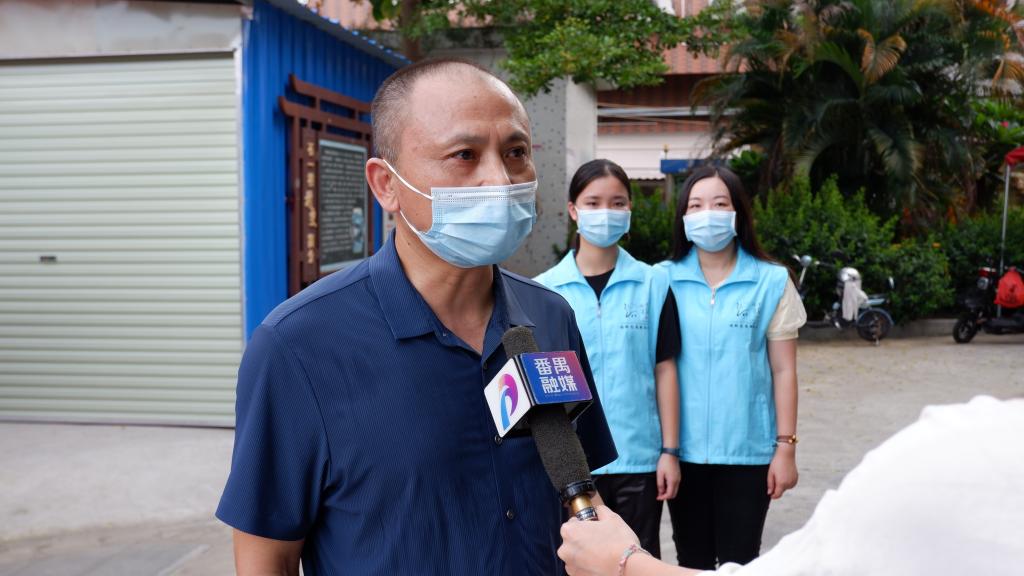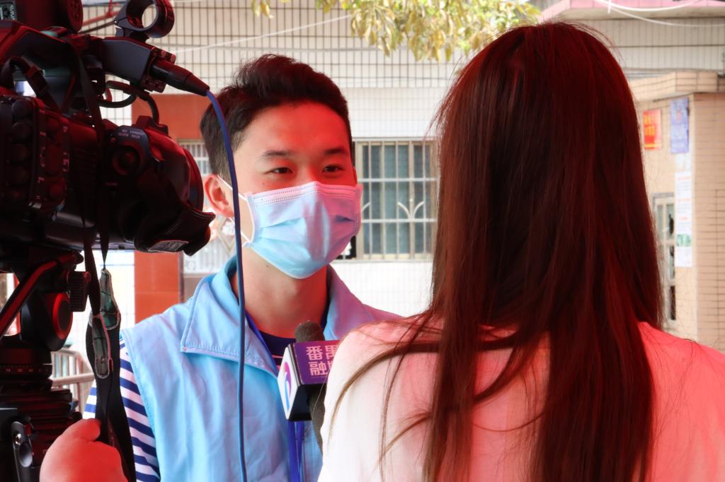 福铃队队员席琛在接受番禺区融媒的采访时提到群众的笑容令他心中充满成就感,在学校学习到的知识也可以在志愿服务中学以致用。