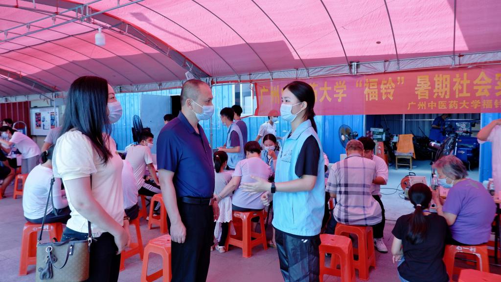 一附院党委副书记章遐义接受了番禺区融媒的采访,在采访中,章书记表达了他对石楼镇居民健康状况的关怀、对福铃队暑期社会实践活动的肯定,同时鼓励更多学子为社会奉献,为人民服务。