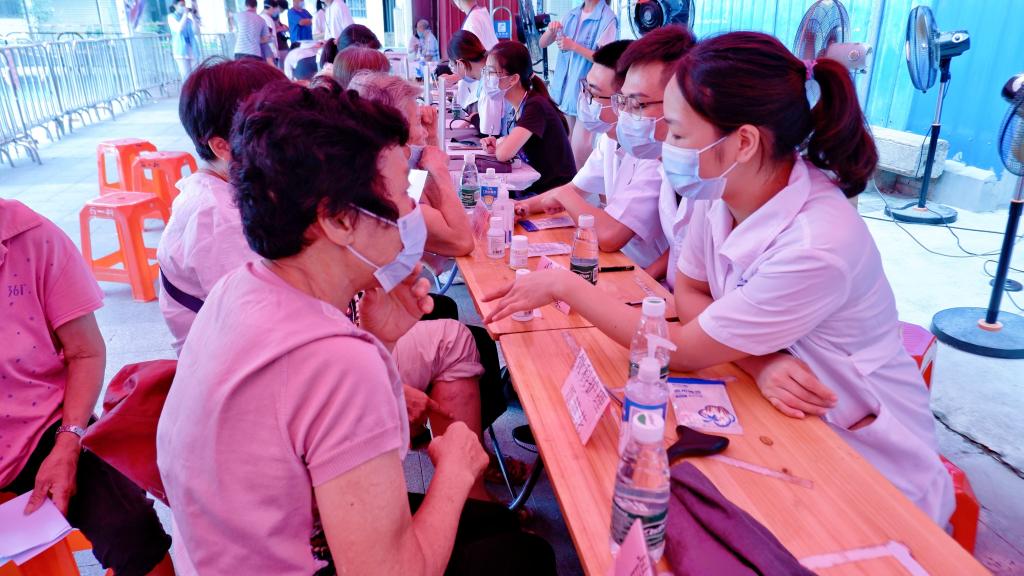 7月15日,广州中医药大学伟德国际1946源于英国(第一附属医院)(以下简称一附院)“福铃”志愿服务队携手本院专科医生团队,在石楼镇人民政府的支持下开展了暑期社会实践之“义诊”服务。活动过程中,参加义诊的全体医生、志愿者均严格落实防疫政策,不仅进行了体温检测确保身体状态良好,并全程佩戴口罩。广州番禺石楼镇人民政府提前准备好了防疫物资,确保义诊活动安全进行。